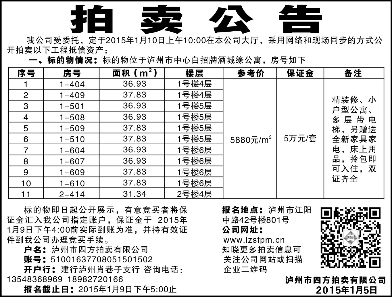 當(dāng)前位置:網(wǎng)站首頁(yè) > 新聞資訊 > 公司動(dòng)態(tài)2015年1月10日拍賣公告