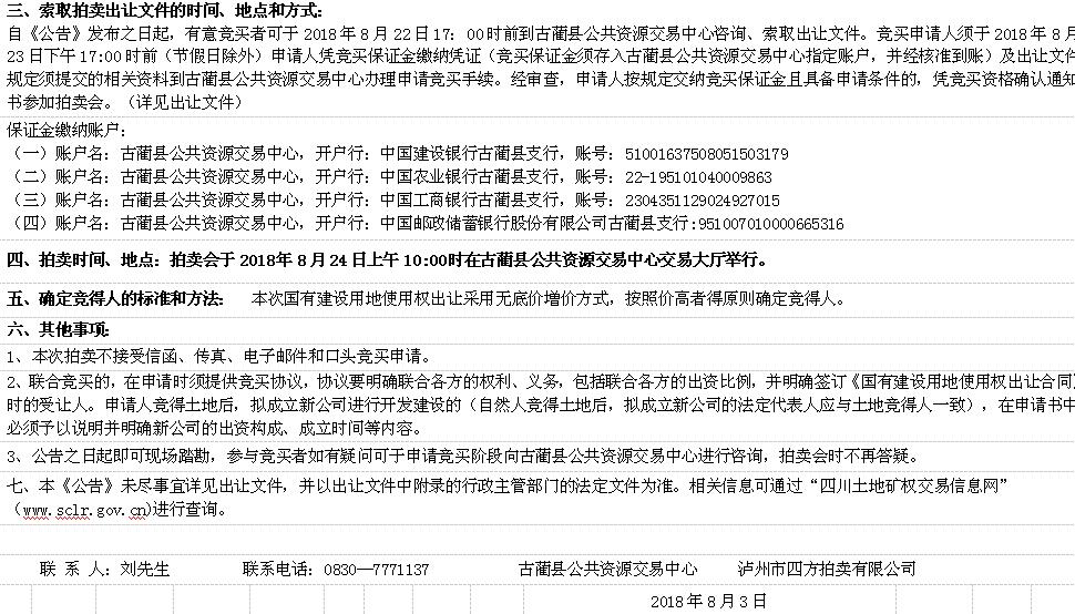古藺縣國有建設(shè)用地使用權(quán)拍賣出讓公告